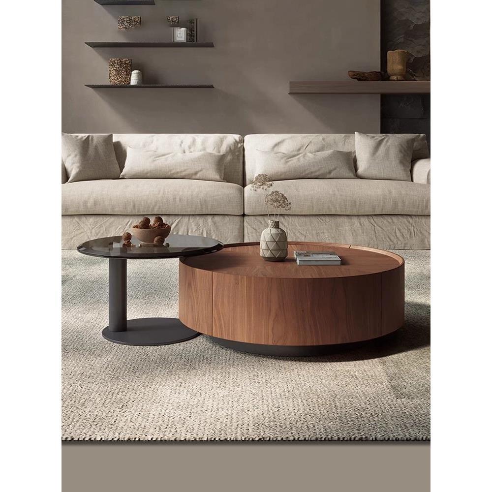 【香港包郵】意式极简小户型轻奢复古风客厅网红圆形方形胡桃木色