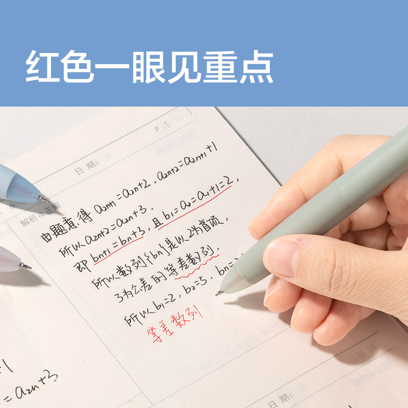 三年二班×点石红笔速干学生用红色中性笔老师专用粗头批改作业高颜值柔绘笔直液式刷题笔圆珠笔勃艮第红水笔