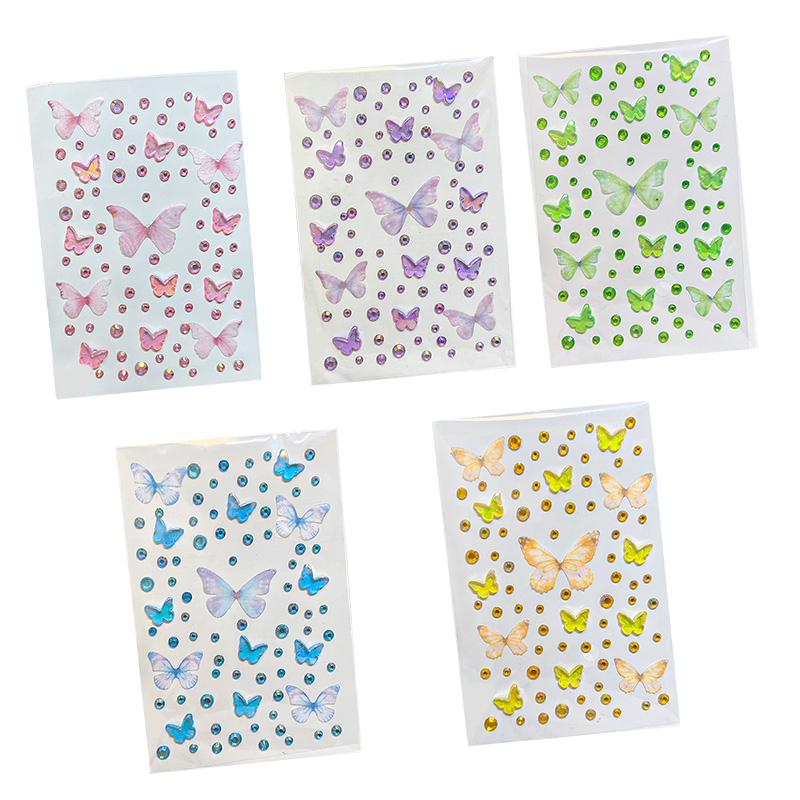 儿童脸部彩绘贴纸小女孩闪钻脸上贴饰品贝壳蝴蝶立体脸贴女童水晶宝石亮晶晶化妆贴舞台表演水钻彩钻贴画妆容