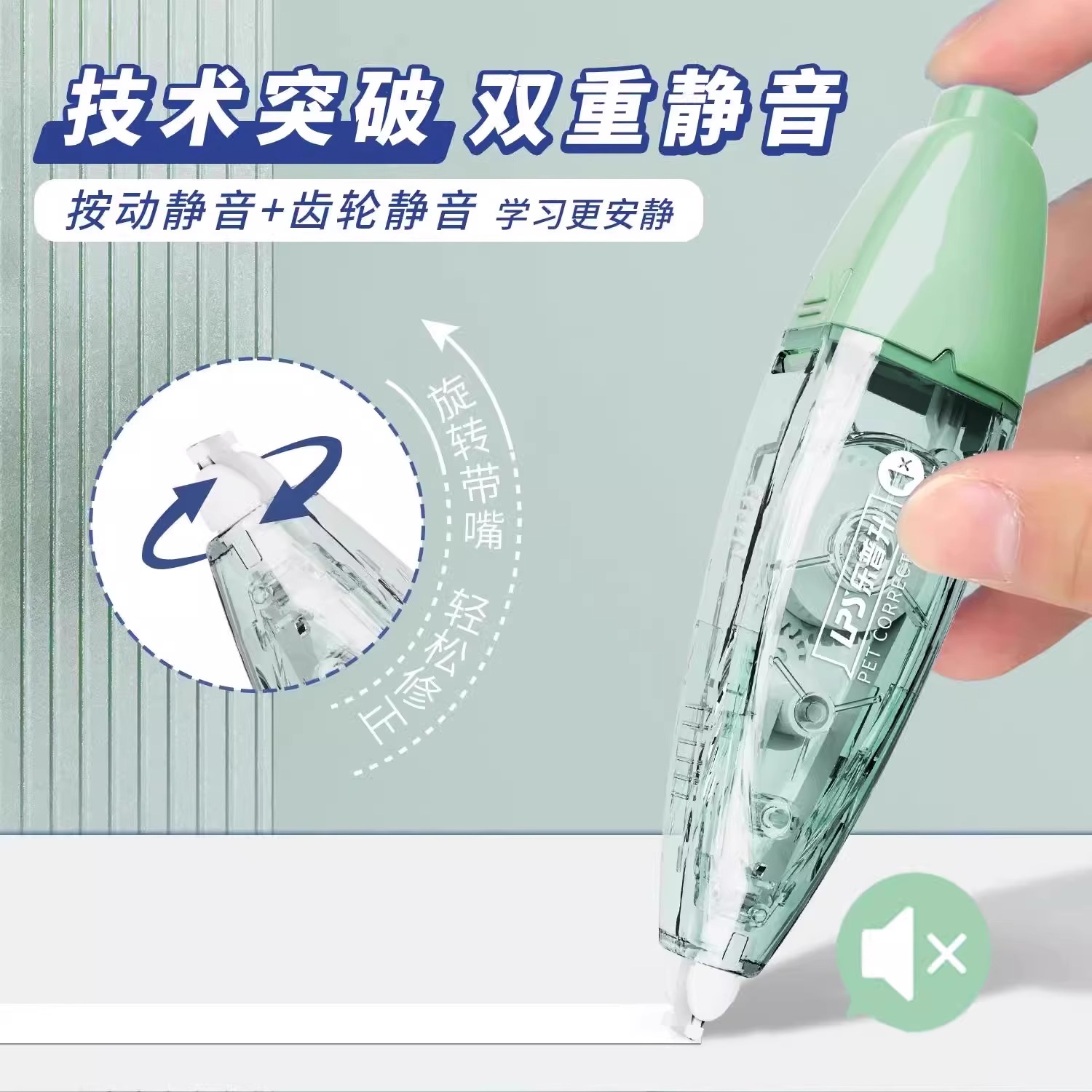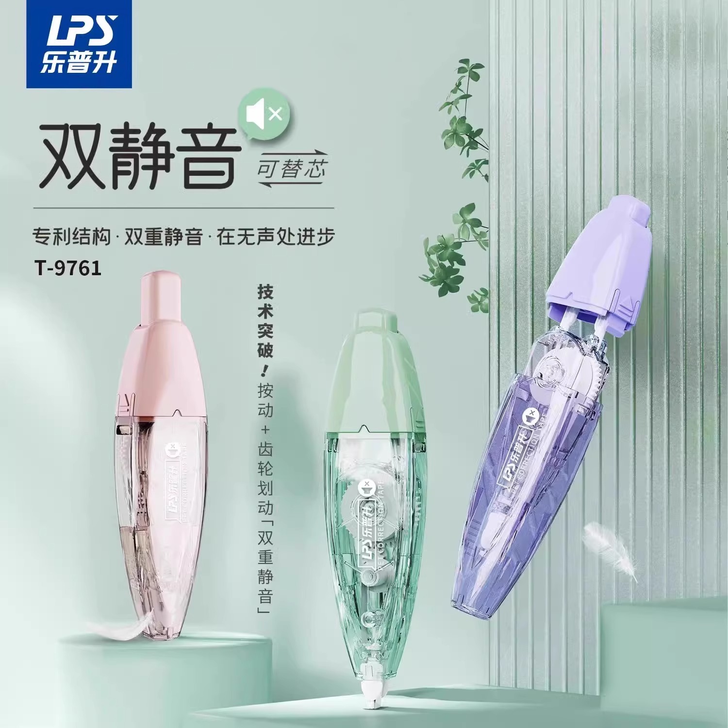 乐普升修正带双静音学生用涂改带笔式按动修正贴修改带替换芯改正带小学生初中生专用新款高颜值彩色女生改错