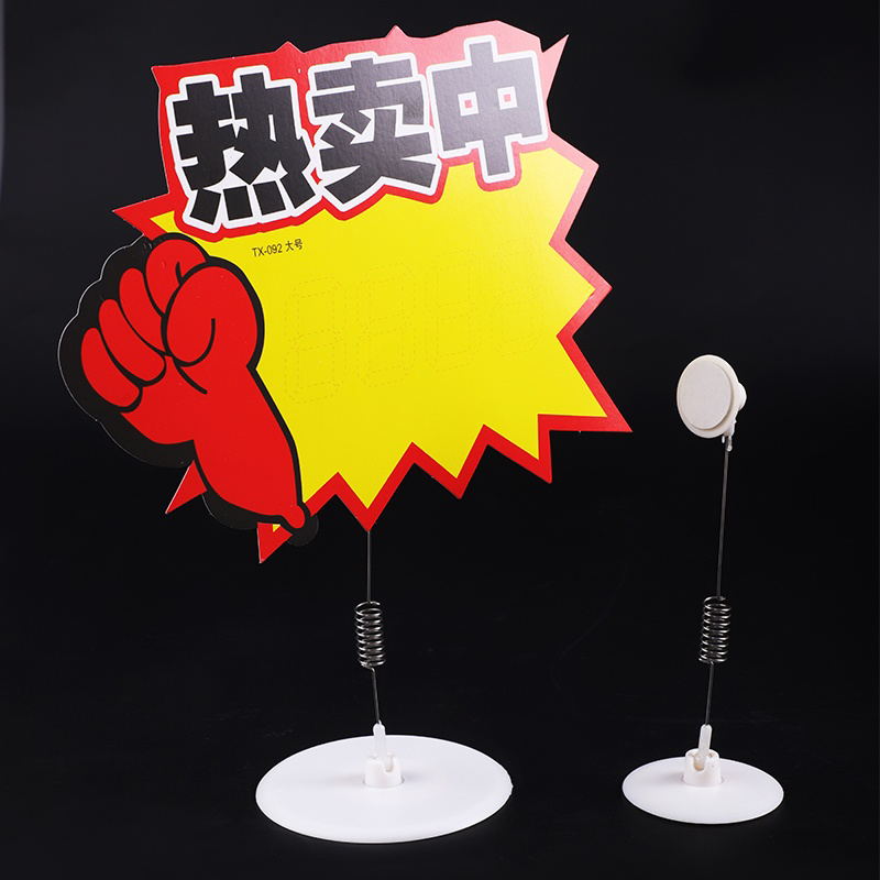 圆盘摇摇牌夹 POP广告夹 大圆盘底座/带胶夹斧头夹T型夹海鲜池标示牌超市桌牌标价签价签广告纸促销价爆炸贴