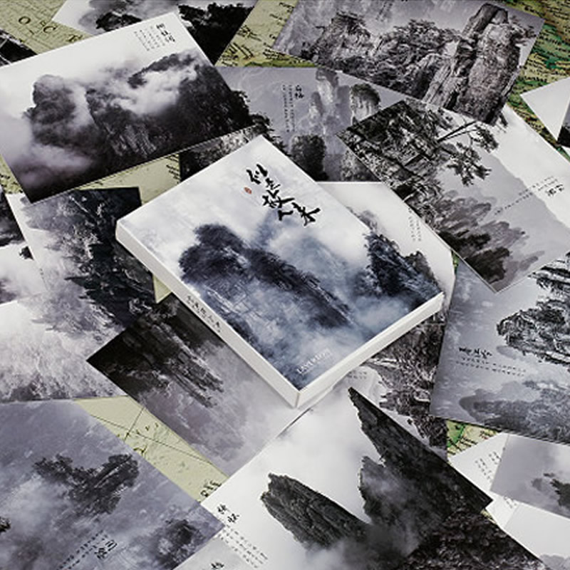 似是故人来国风诗词明信片奇峰峻岭水墨风格拍摄纪念珍藏祝福贺卡