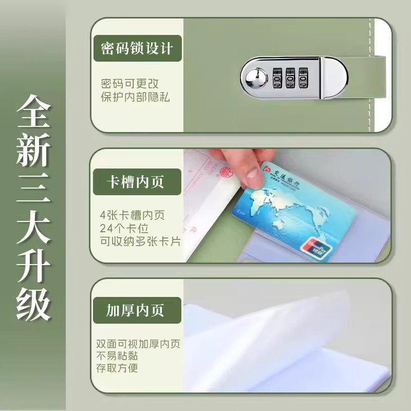 2025新款定期存折存单收纳本多功能票据存单夹收纳册大容量存款支票据收纳神器密码锁存钱本发票收纳包专用夹
