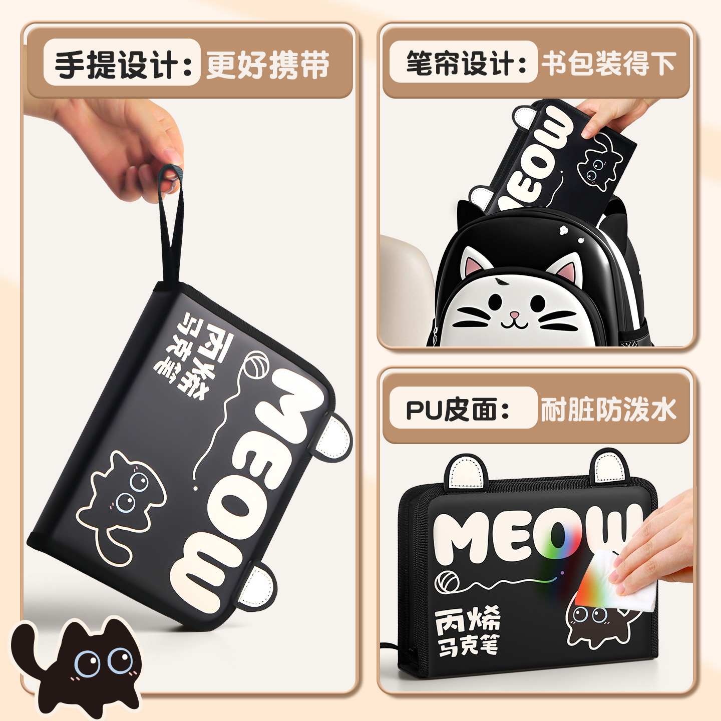 恩米小黑盒直液式丙烯马克笔小学生专用软头美术生儿童手绘画画涂鸦不透色可叠色可水洗彩笔速干防水80色画笔