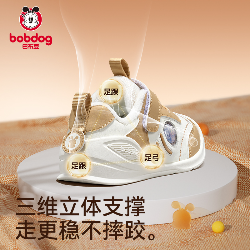 巴布豆宝宝步前鞋秋冬加绒男童软底鞋女童婴幼儿机能鞋学步童鞋