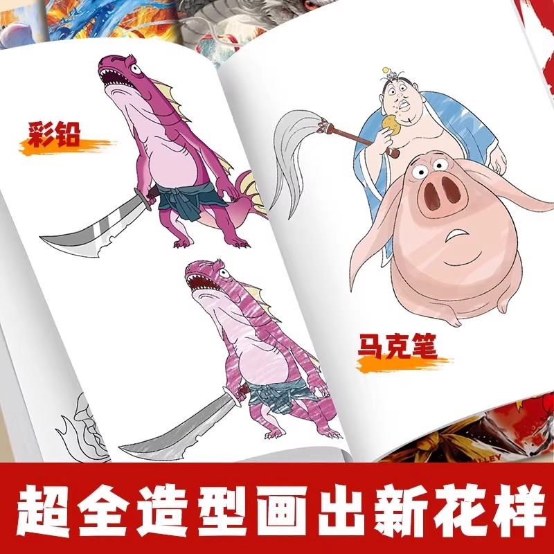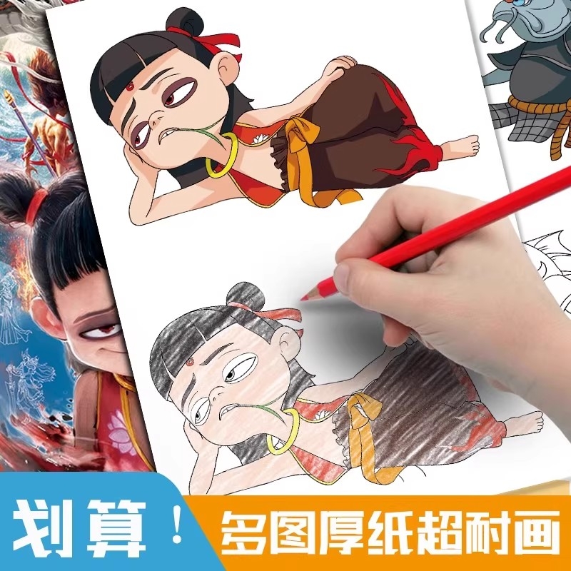 哪吒之魔童闹海描摹本动漫线稿绘画本敖丙申公豹临摹画册卡通人物画画本小朋友儿童学画涂色本幼儿园专用素描