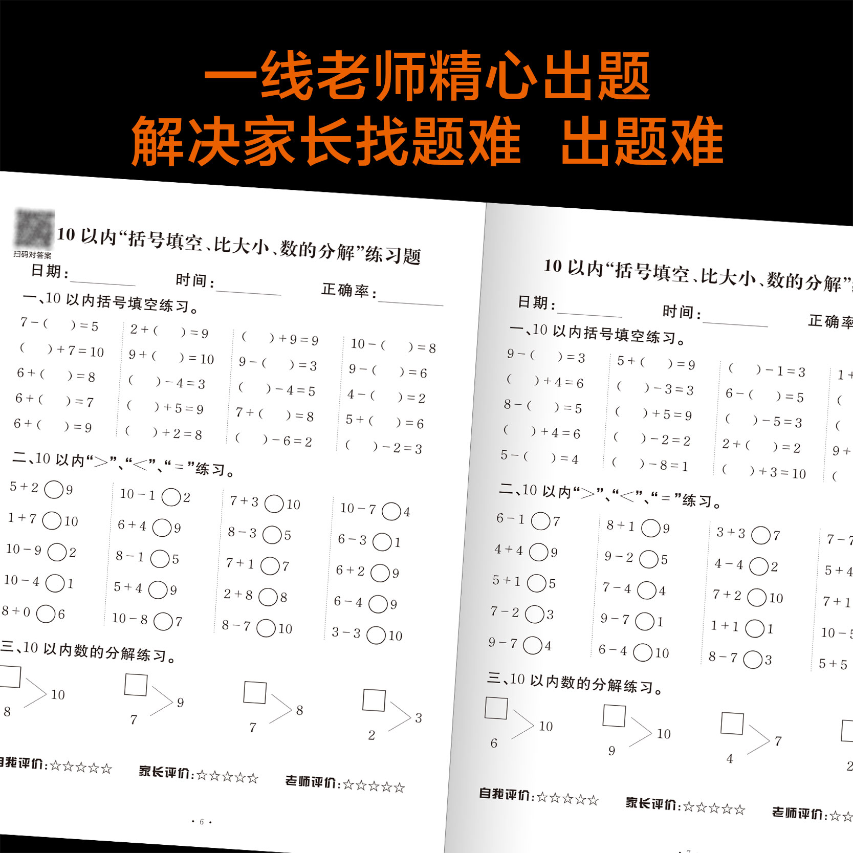 十10以内加减法混合方框填空天天练幼儿园大班一年级数学口算题本