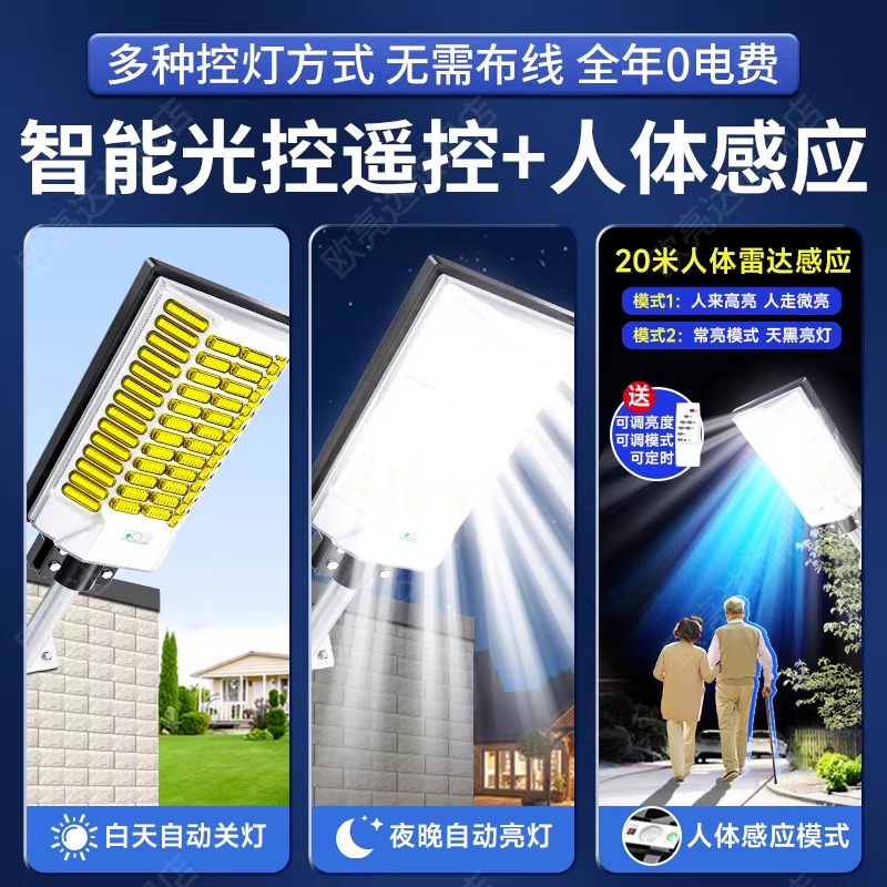 2025新款太阳能路灯户外灯家用庭院灯人体感应农村院子太阳灯照明