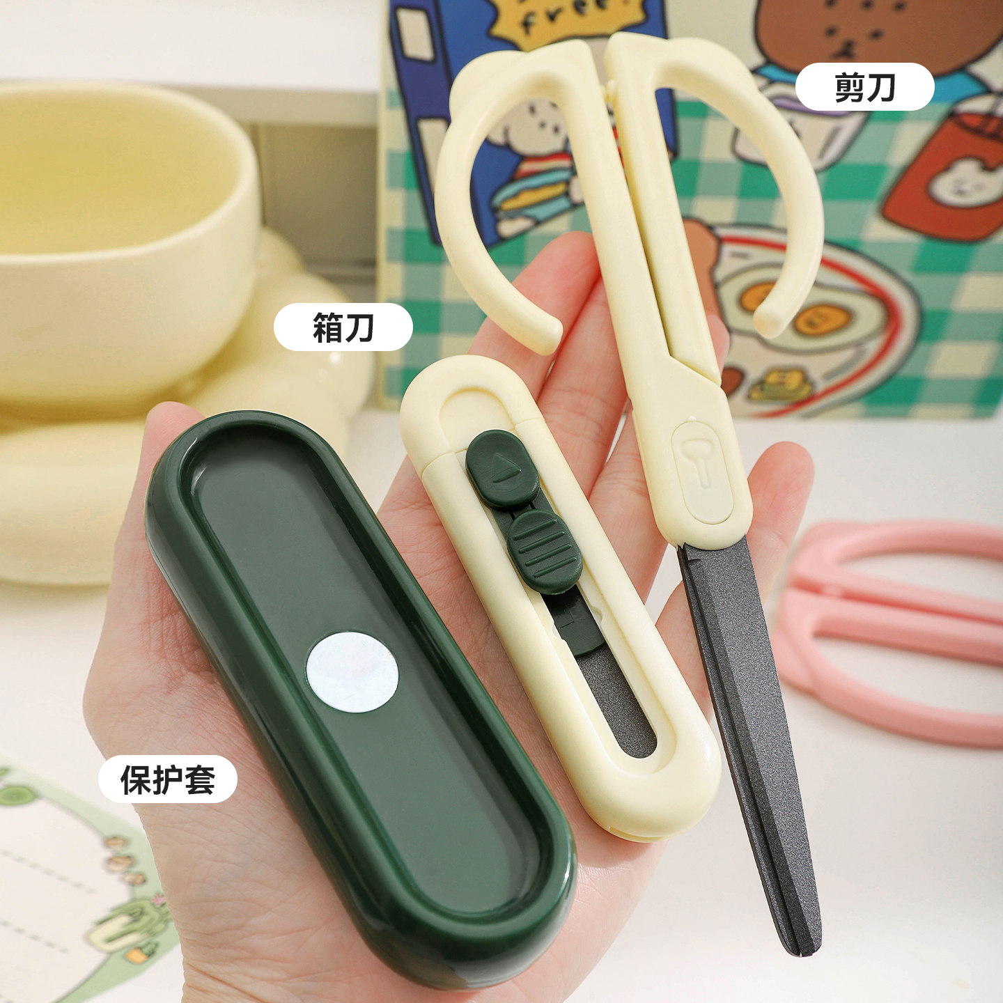 专用拆快递包裹纸箱神器磁吸开箱剪刀小刀学生拆箱刀防割手高颜值