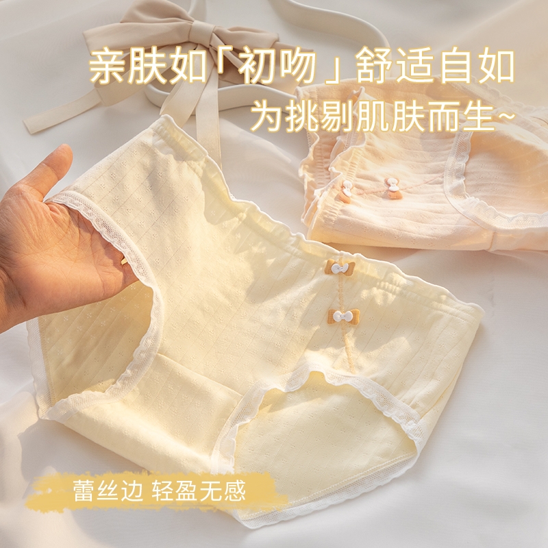 内裤女生纯棉抗菌100%全棉裆2023新款日系无痕透气女士中腰短裤