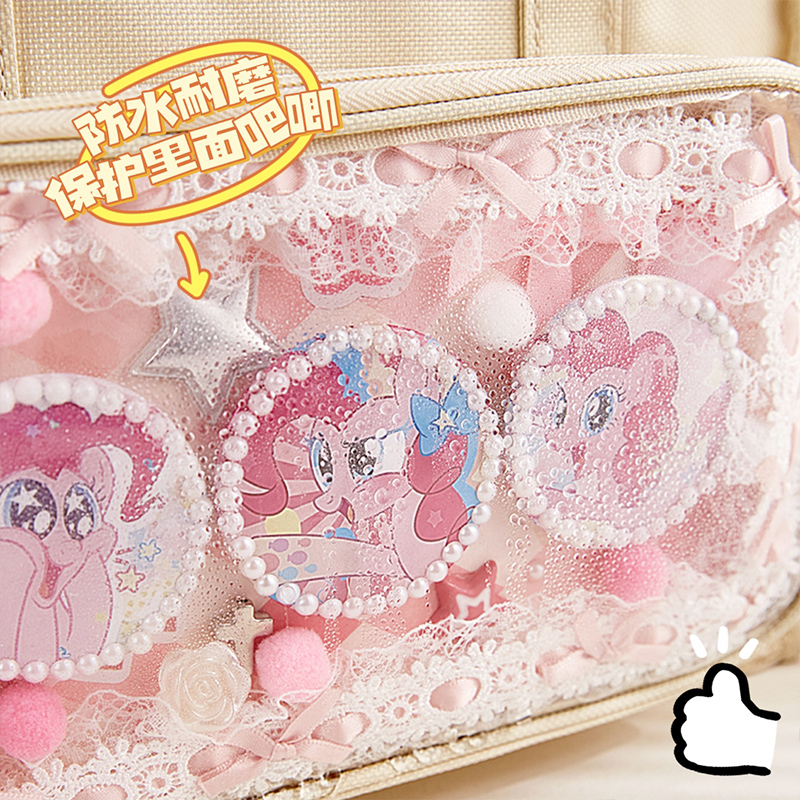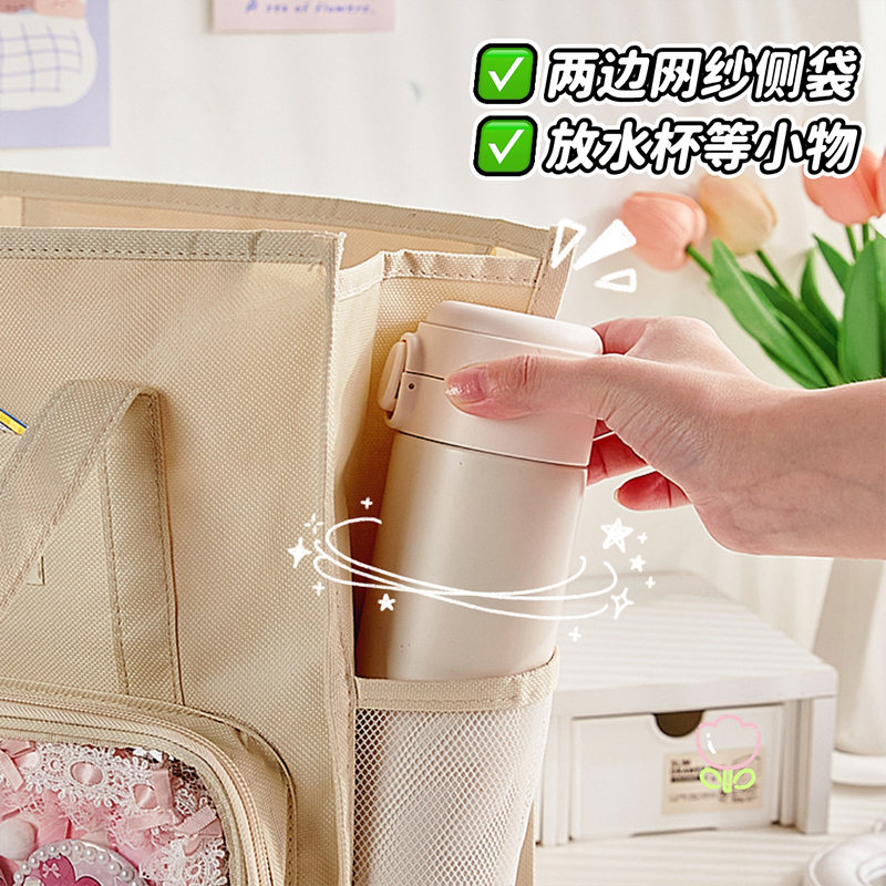 送扎板!多功能熊猫痛包补习袋二次元小食量吧唧收纳包小学生手提拎书袋透明痛层帆布包女孩补课包学习书包