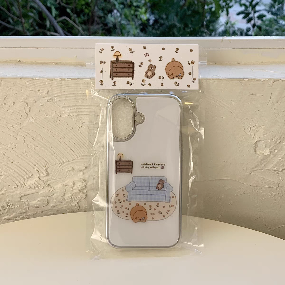 沙发小熊狗狗镀银边软壳适用于苹果手机壳iPhone16promax亚克力15pro/14/13/12/11新款包括秋冬新品可爱卡通