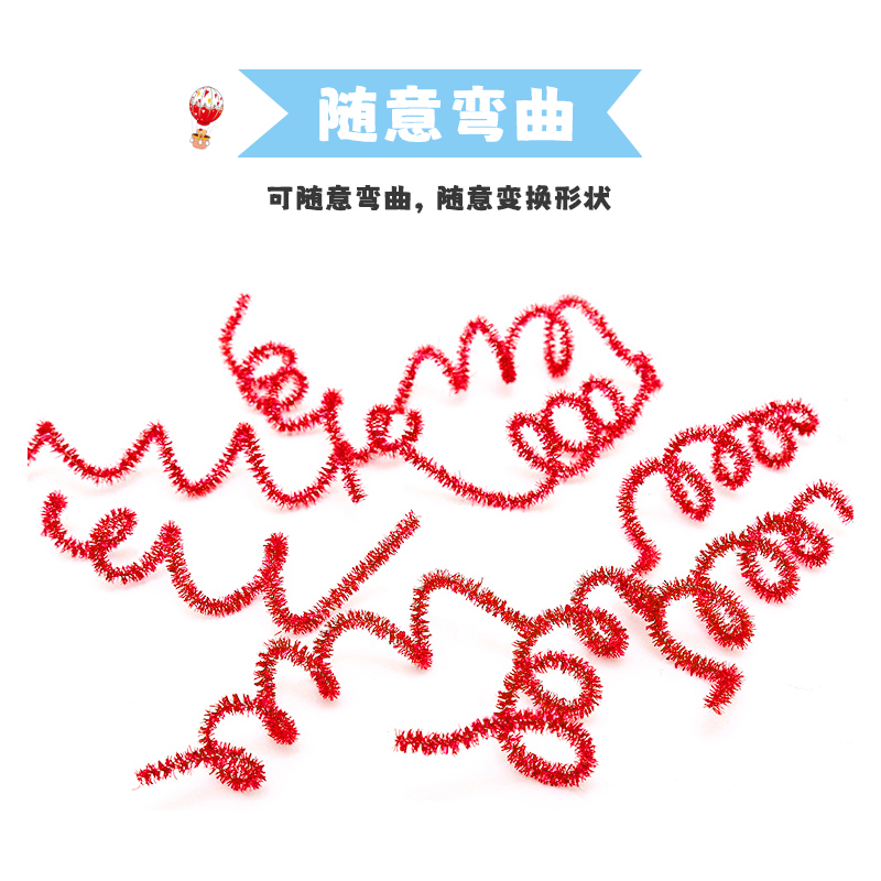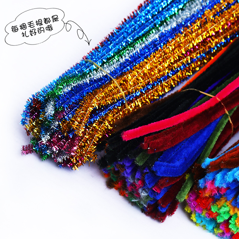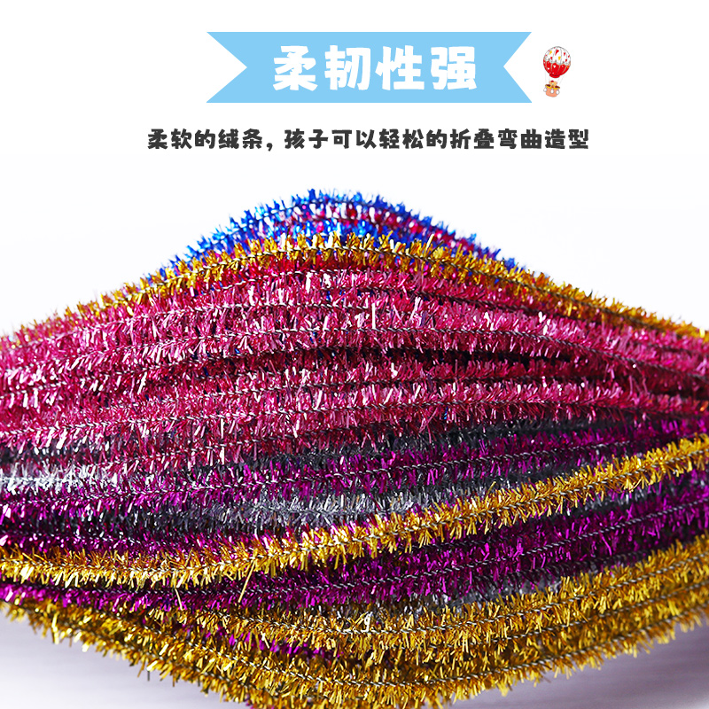 金葱扭扭棒毛根花束儿童手工diy眼睛毛球制作材料包彩色加密马卡龙七彩闪光波浪毛条毛绒条超大玫瑰花不掉毛