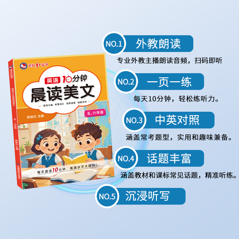 2025新版英语10分钟晨读美文小学生三四五六年级绘本作文范文听力专项训练口语练习语法核心词汇写作素材积累英文句式同步朗读