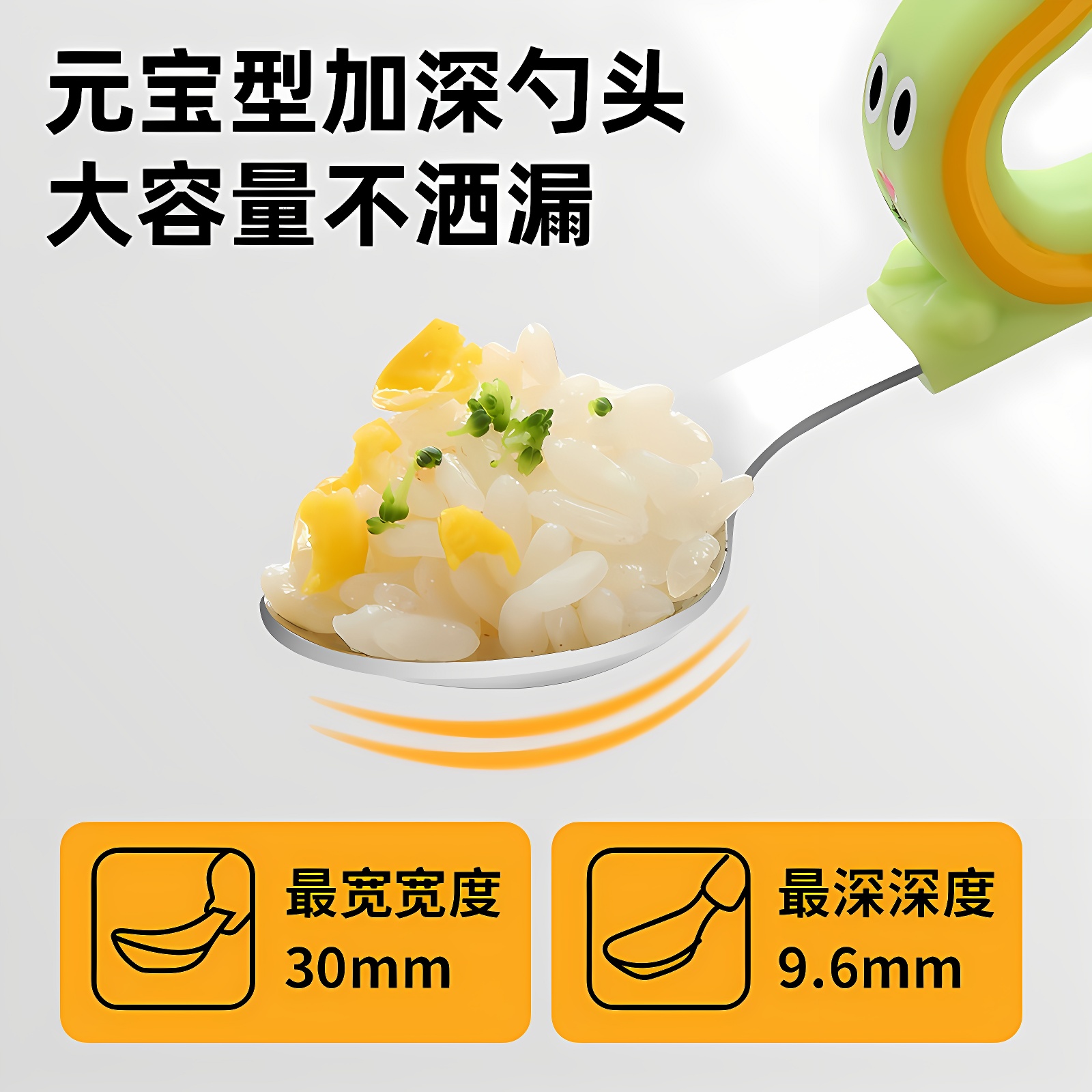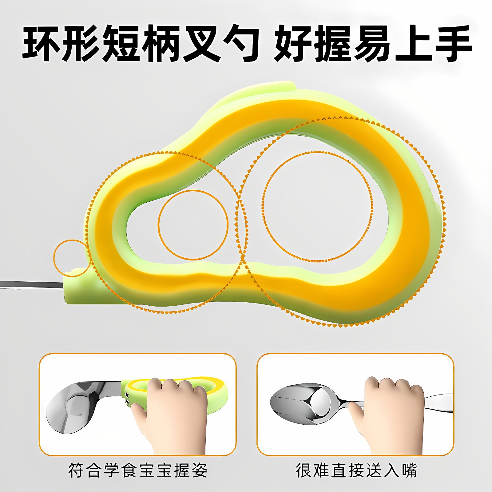 宝宝勺子自主进食学吃饭婴儿短柄初学者便携外出弯头辅食耐高温