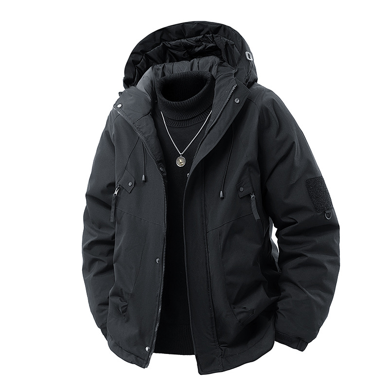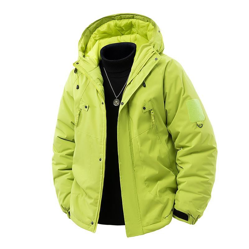 特正步男款秋冬石墨烯加热冲锋衣连帽纯色薄款防风外套紫色鸭绒