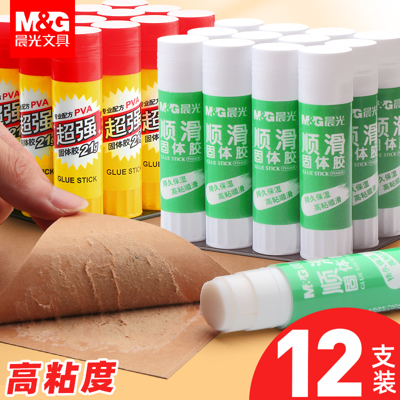 晨光胶棒固体胶大号办公财务胶水儿童幼儿园手工课强力胶水学生用考研小刀固体胶棒36克大容量12支21克高粘度