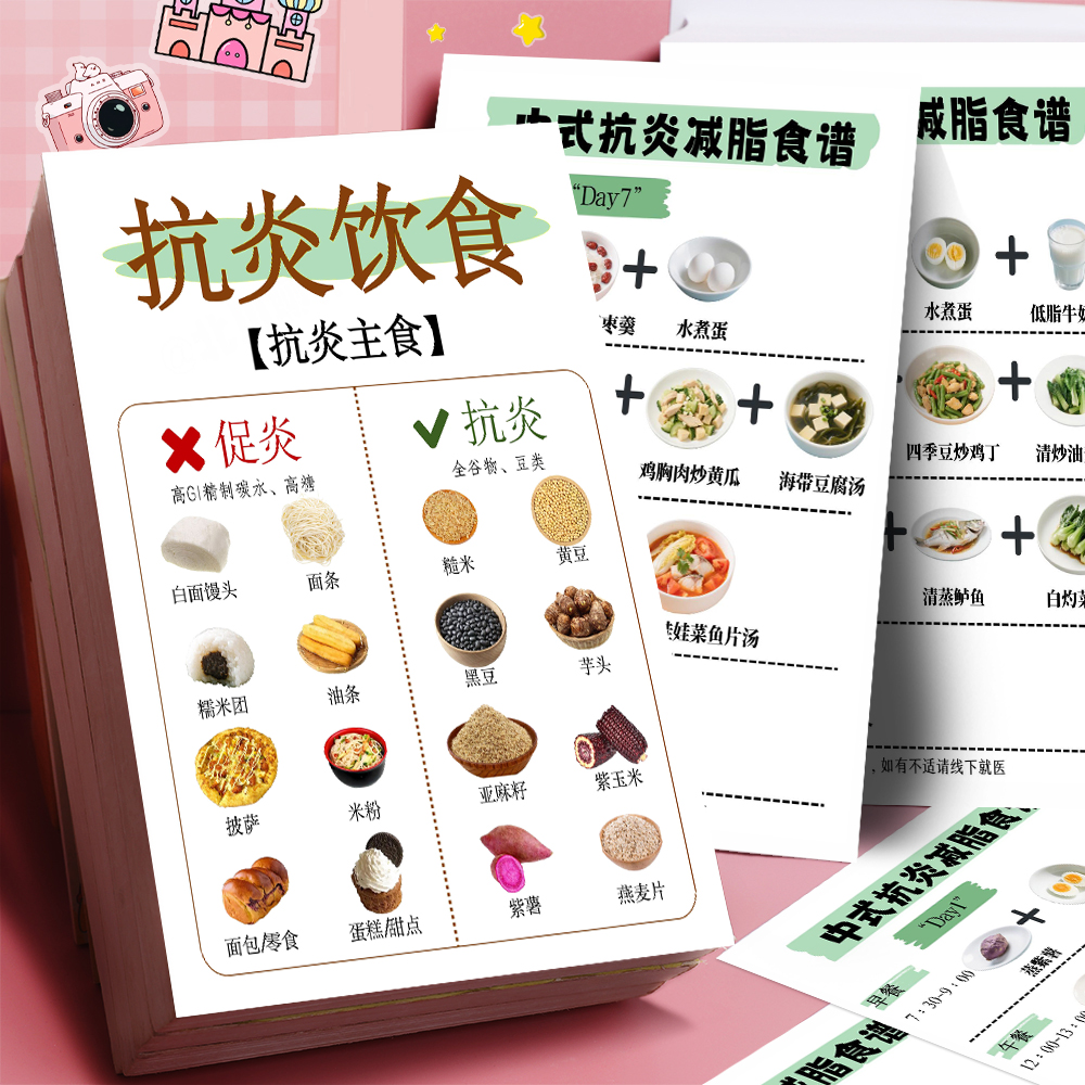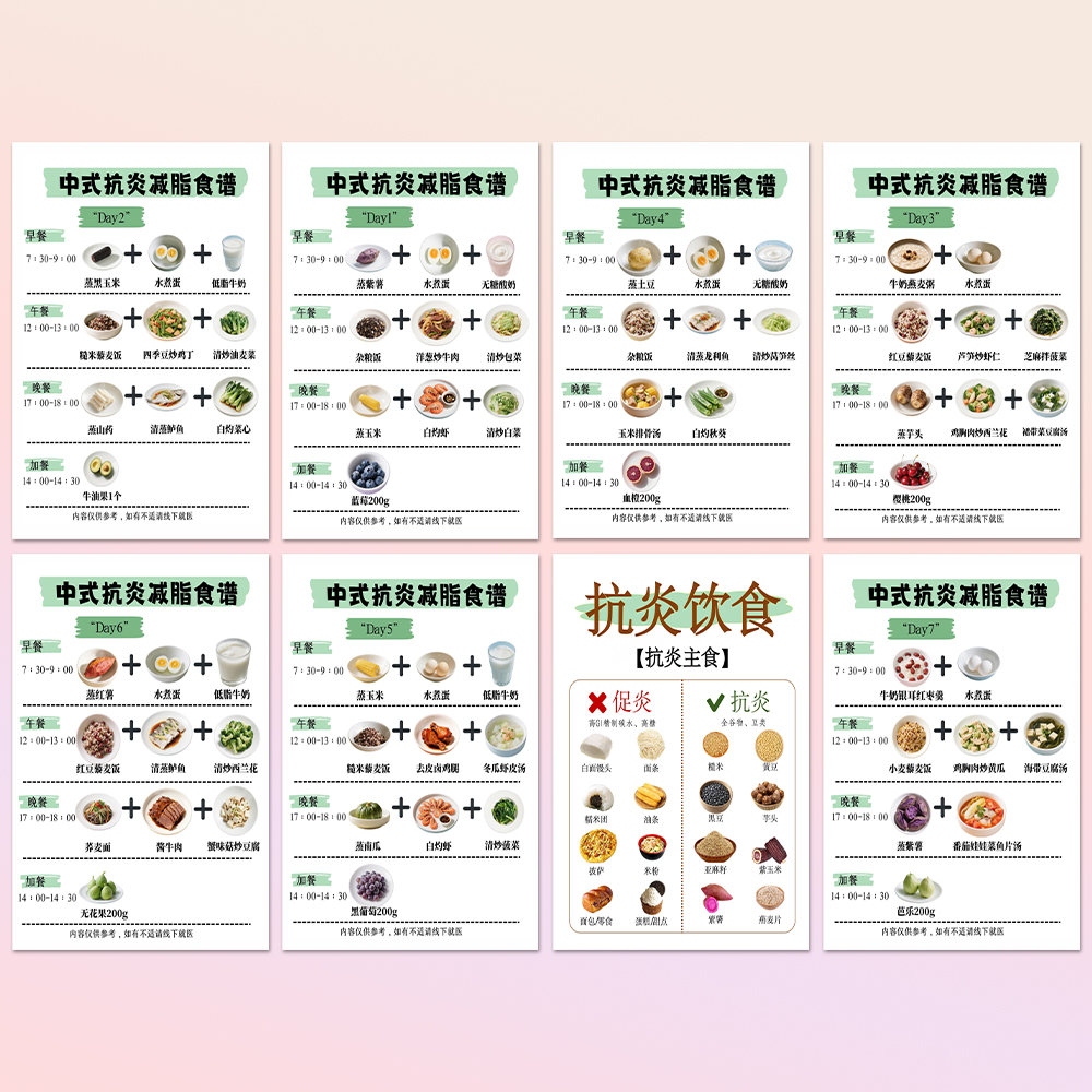 中式抗炎轻养减脂食谱健康食疗营养瘦身每日膳食合理搭配大张贴画