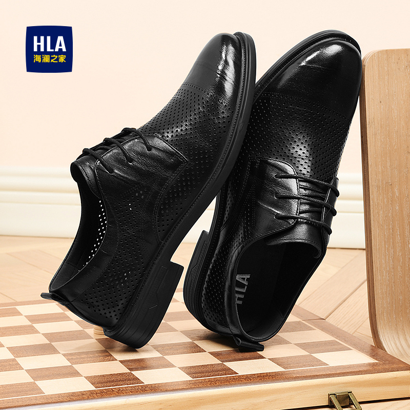 HLA/海澜之家男鞋2025夏季新款商务正装透气冲孔增高皮鞋新郎鞋男