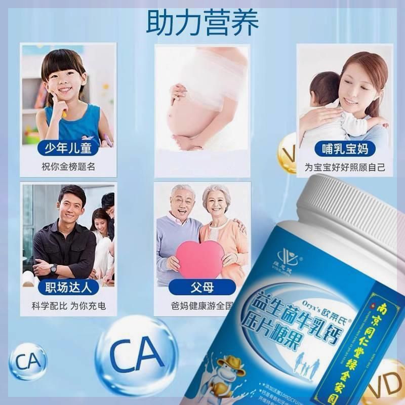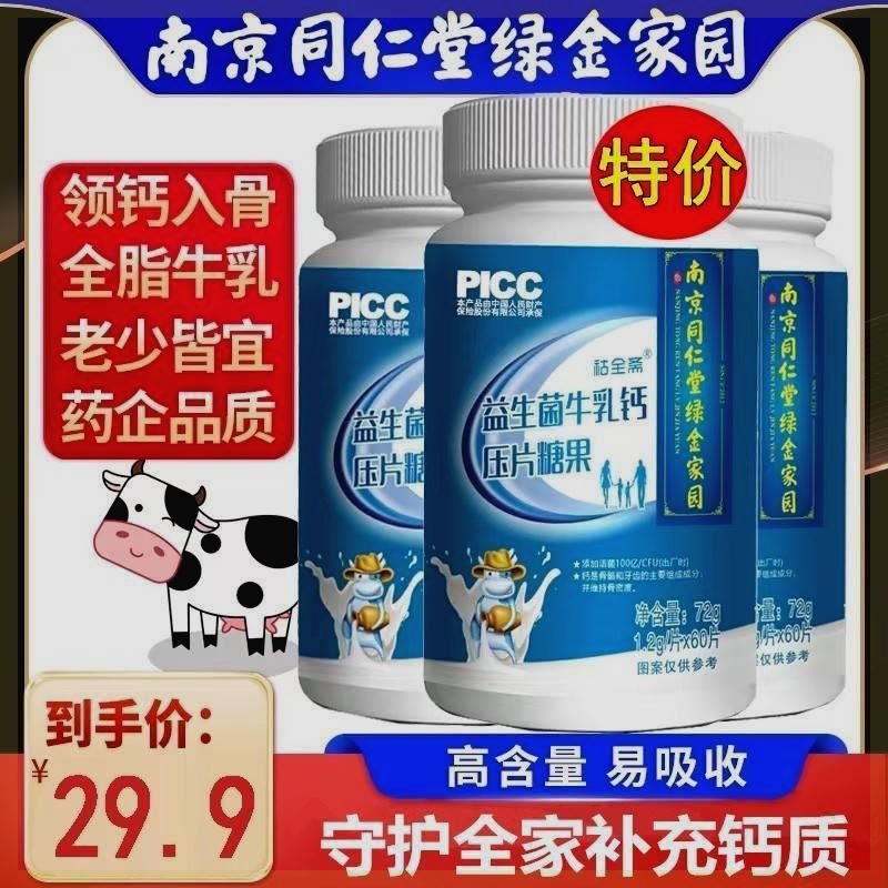 南京同仁堂益生菌牛乳钙片中老年人儿童学生成人60片咀嚼压片糖果