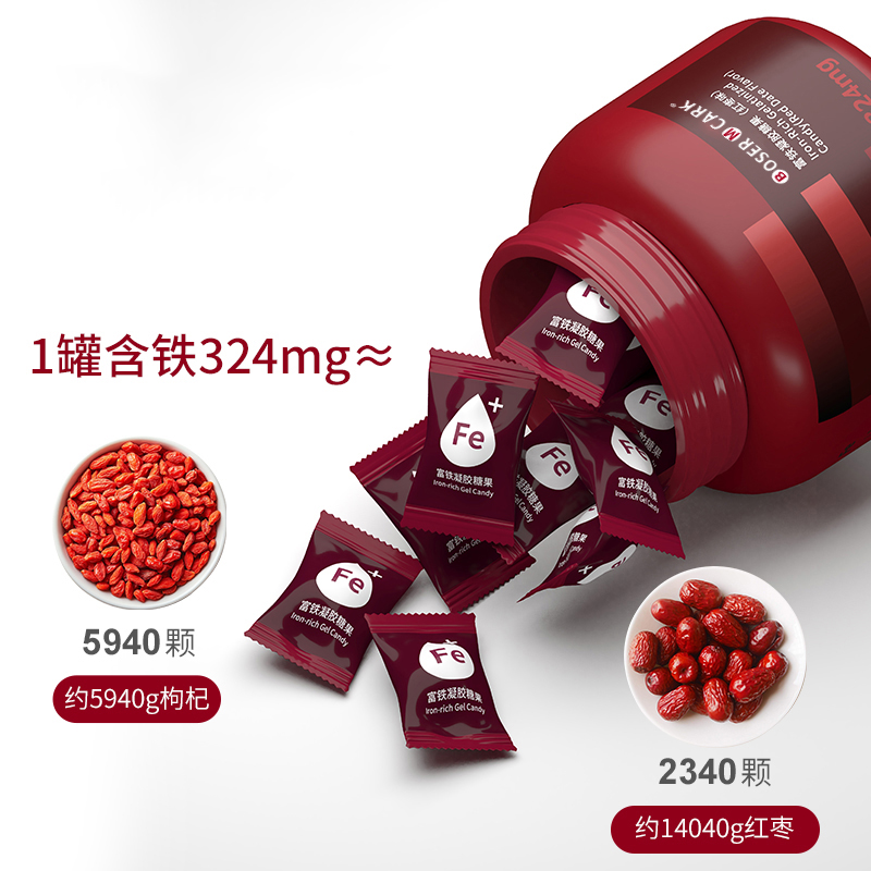 买一送一富铁软糖270克桶装324mg铁女性铁营养正品红枣味罐装国货