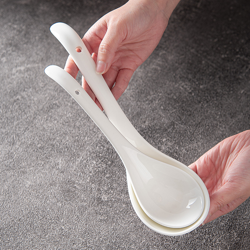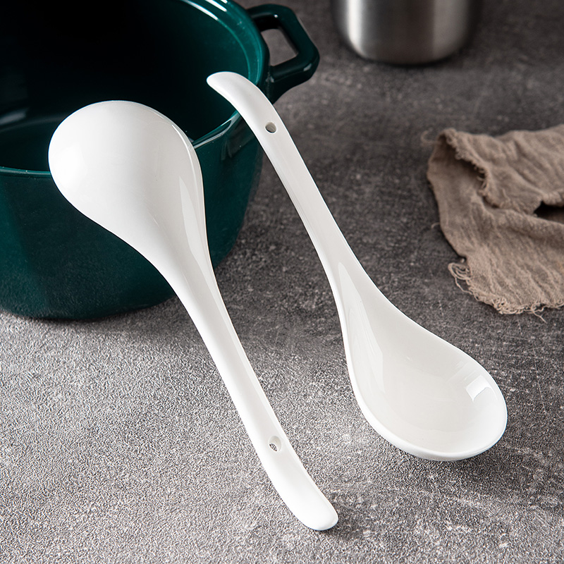 陶瓷大汤勺纯白家用饭店长柄盛汤勺舀粥调羹汤匙勺子白瓷特大号