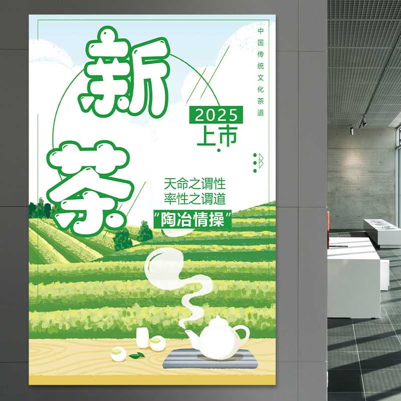 春茶上新广告茶城茶馆背景墙贴画新茶上市海报茶叶店玻璃门贴纸春季新茶上新各种种类茶叶贴纸墙贴