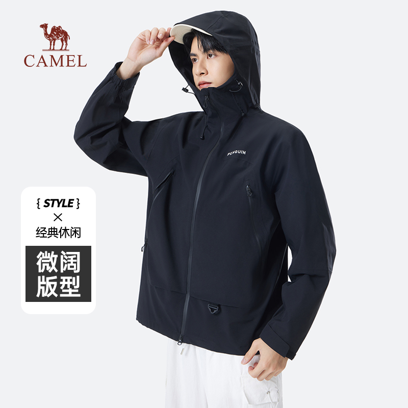 骆驼时尚冲锋衣男女款春秋外套2025三防连帽夹克防风机能登山服