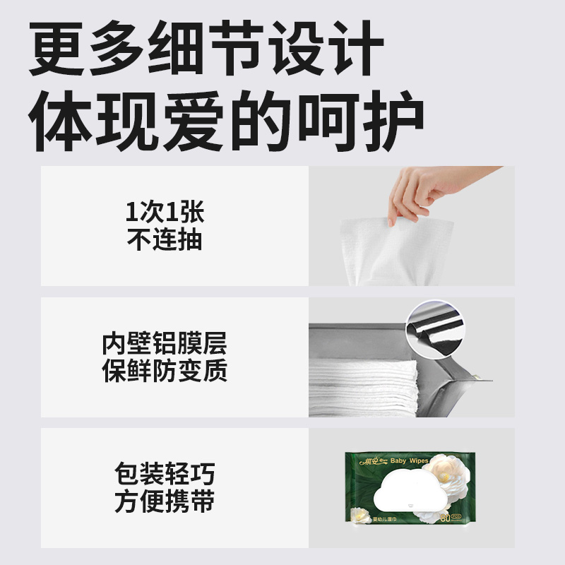 80抽嫚熙绿贝壳新生婴儿湿巾婴幼儿专用手口可用纸巾厚洗脸巾专区