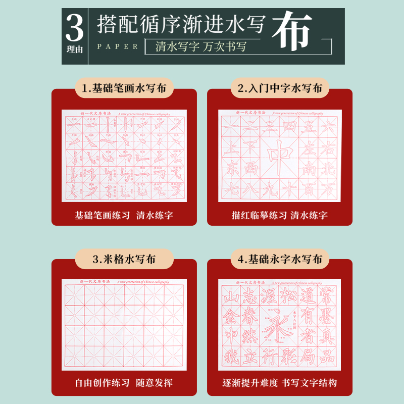毛笔书法练习套装水写布初学者入门小学生练毛笔字全套笔墨纸砚沾清水练习米字格空白清水速干练习字帖练习布