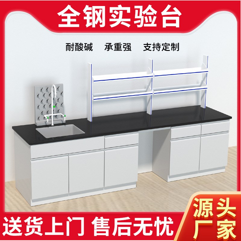 全钢实验室工作台化验室仪器桌子钢木操作检验试验台带水池槽边台