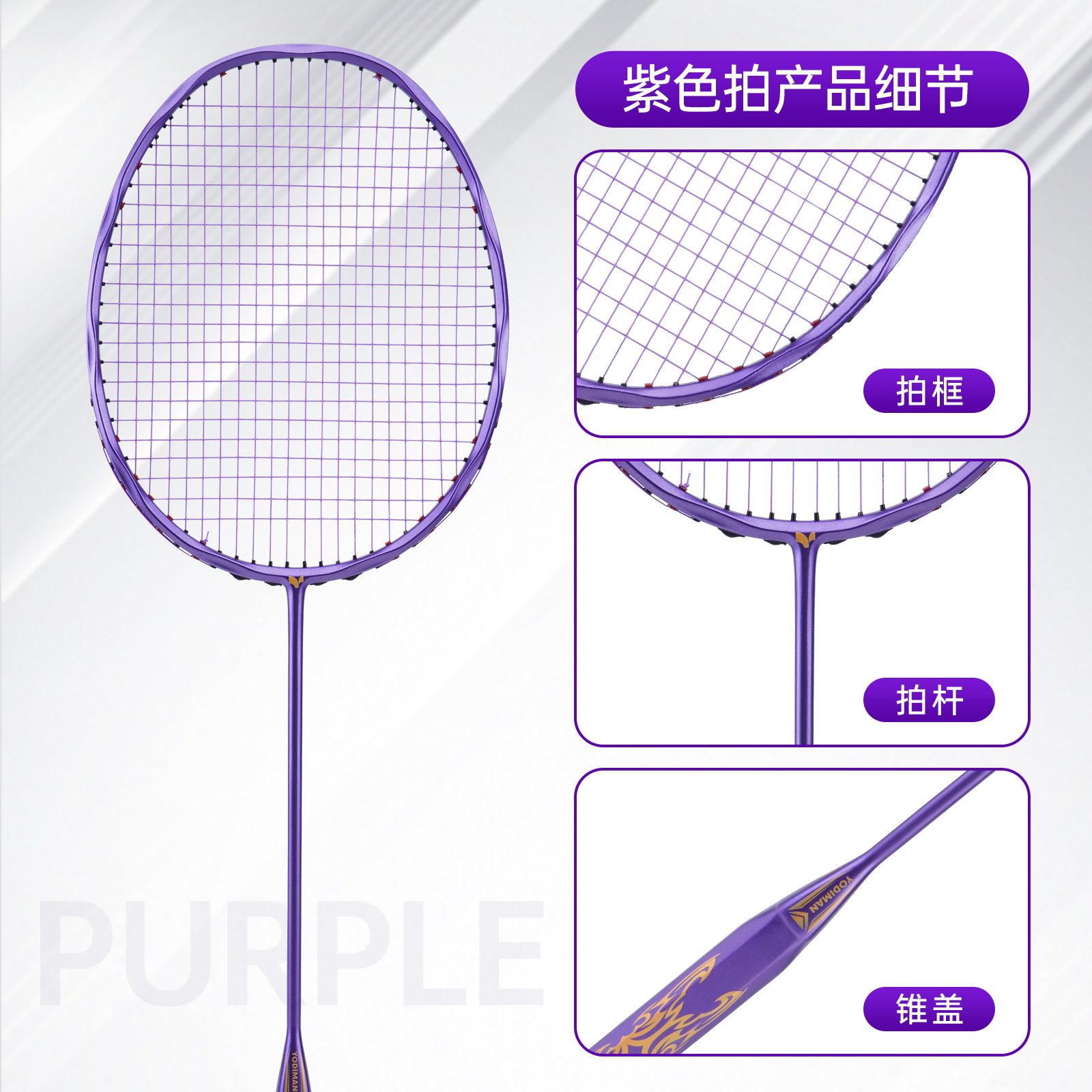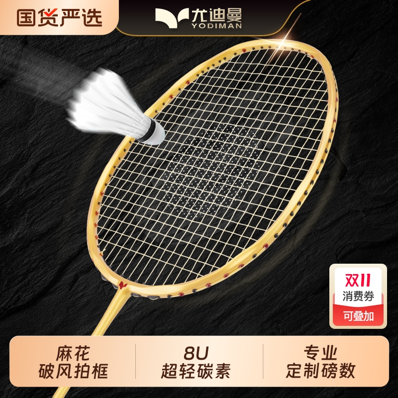 尤迪曼8U超轻全碳素羽毛球拍单拍波浪破风框速度型纯色一体麻花拍