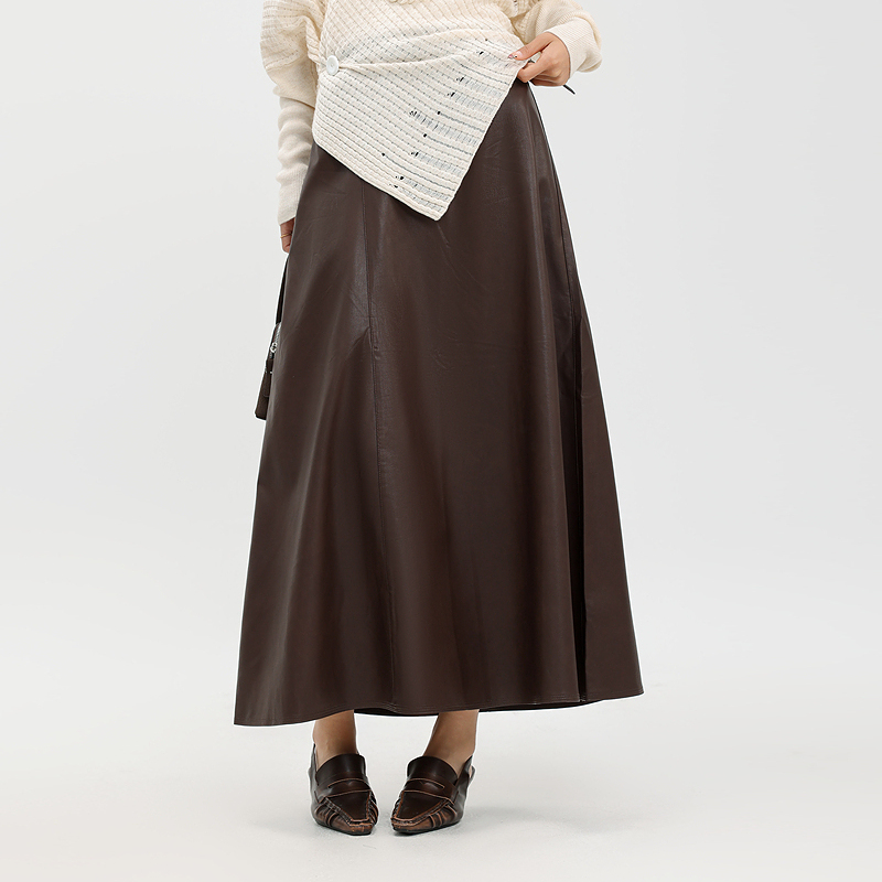 记忆的起点PU半身裙2025冬季新款高腰百搭显瘦A字皮裙女69AD60393