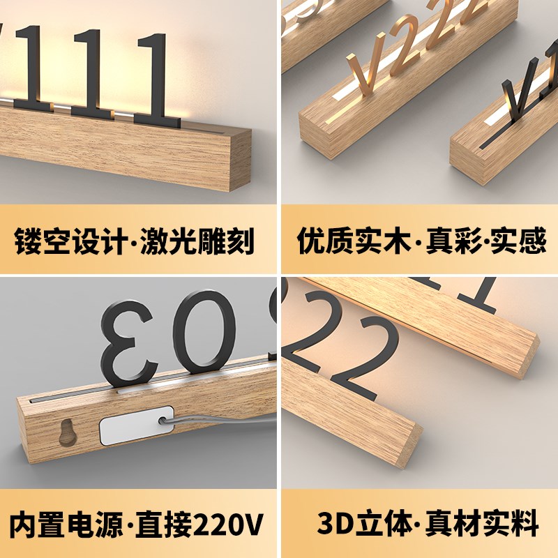 实木发光VIP贵宾室包厢门牌酒店饭厅客房餐饮包间标识牌创意