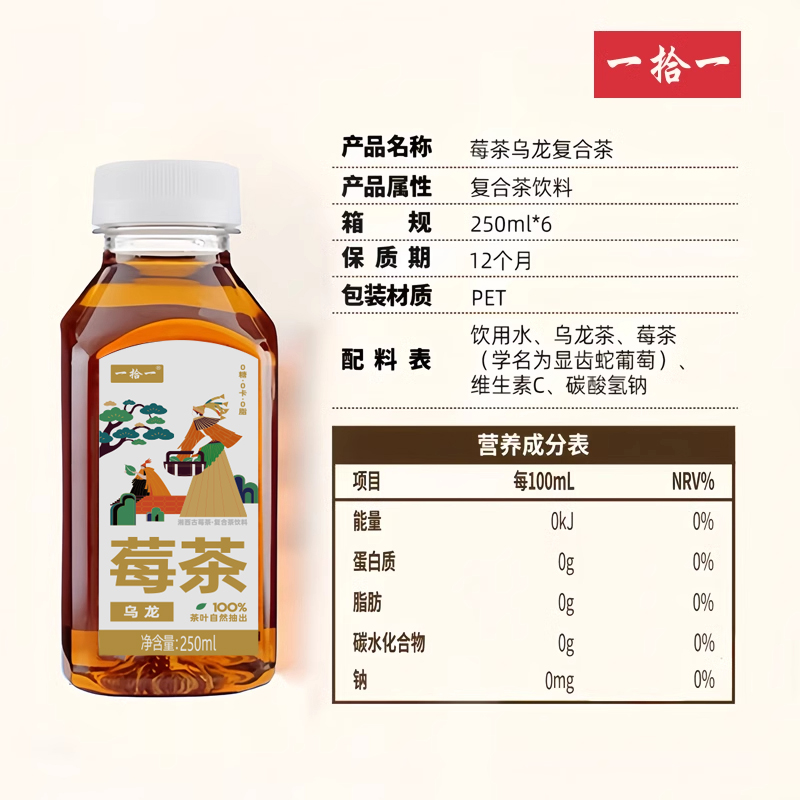 一拾一 莓茶乌龙茶复合茶饮料250mlx6瓶0添加原茶泡制茶香醇厚