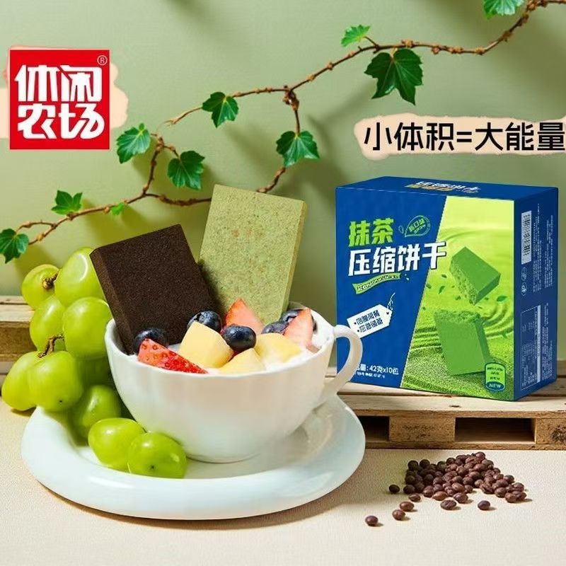 休闲农场压缩饼干抹茶黑曲奇代餐饱腹充饥解馋零食品小体积应急