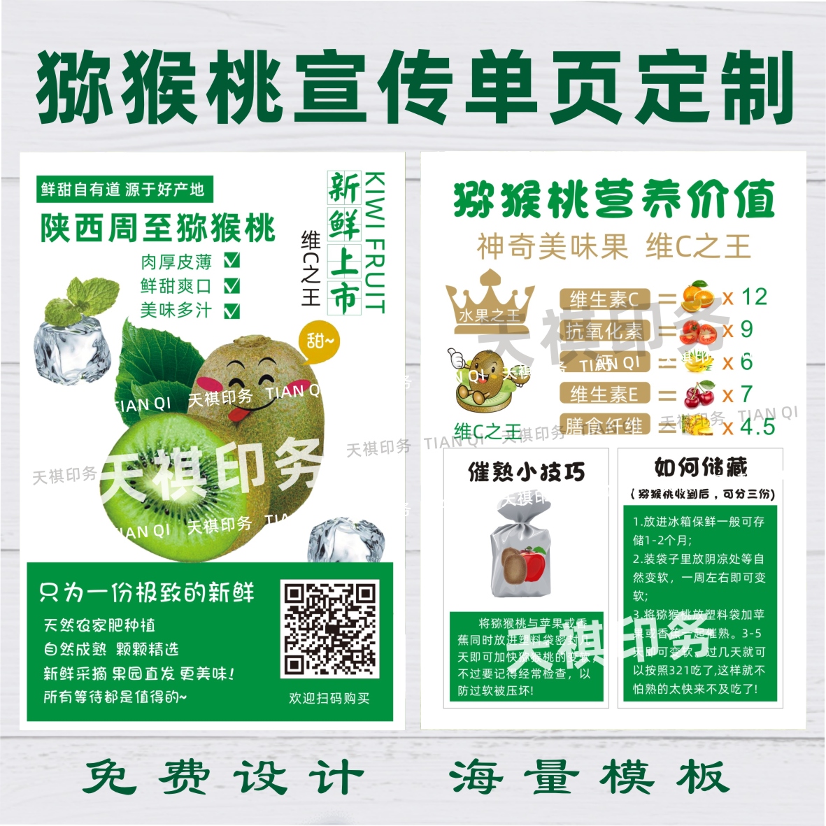 周至翠香猕猴桃双面食用说明书催熟方法宣传单页双面设计印刷定制
