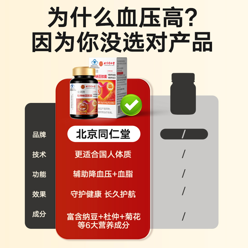 北京同仁堂金源牌杜仲纳豆胶囊降血脂血压中老年心脑血管疏通软化
