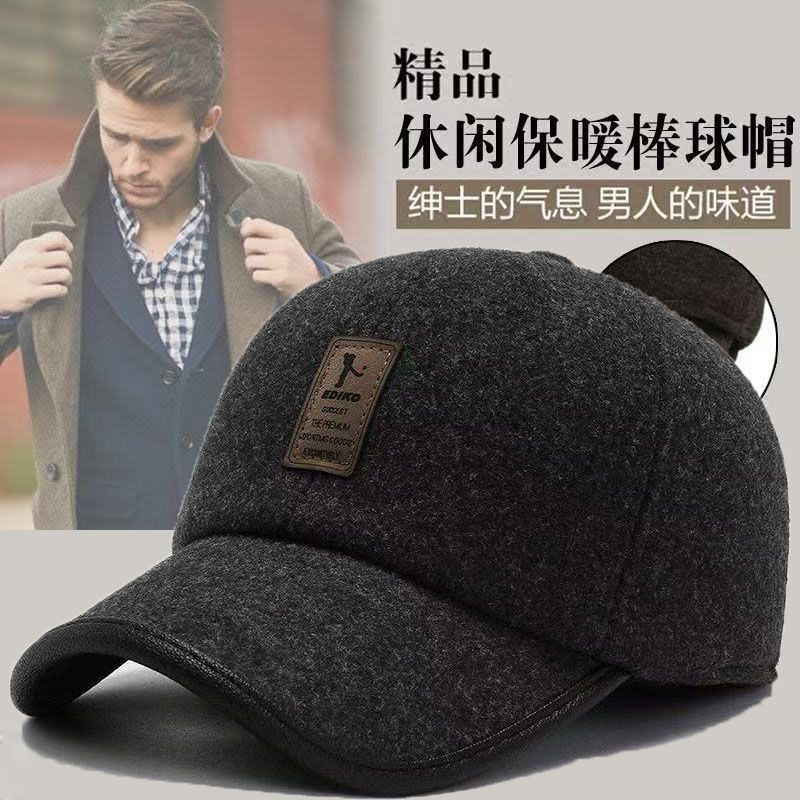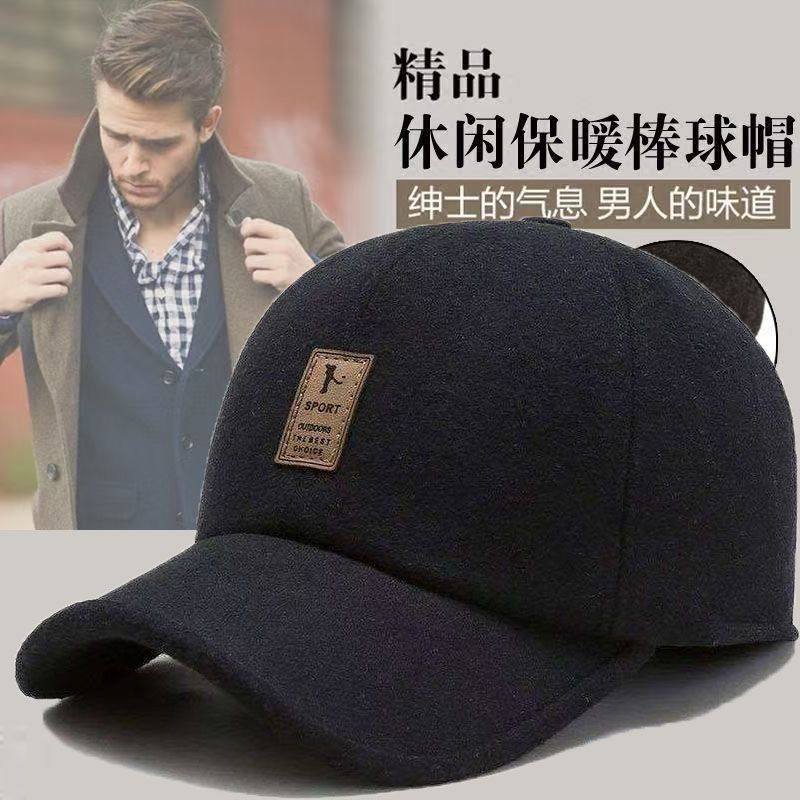 有被毛呢帽到新款鸭舌帽中老年毛呢保暖护耳可调节老人帽冬季加绒