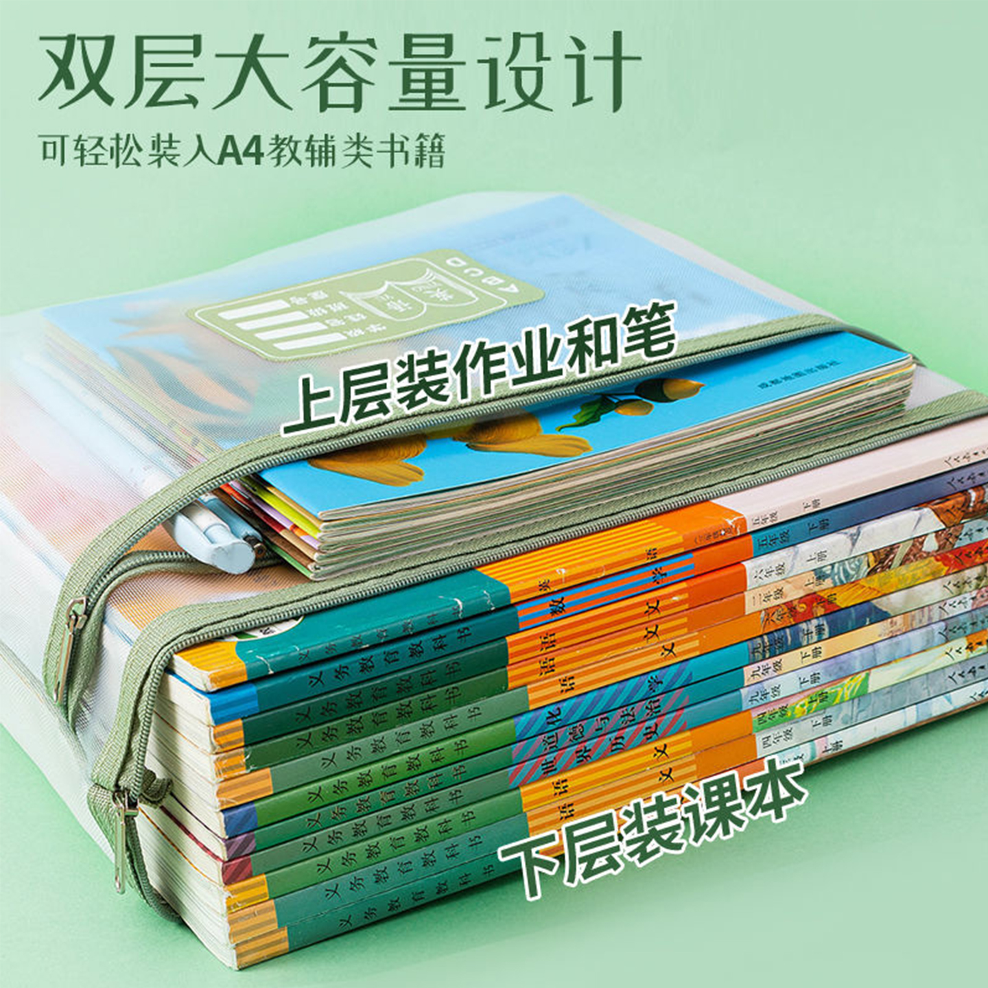 学科科目分类文件袋拉链式双层大容量小学生用资料书本课本分科书袋试卷收纳袋学生装卷子作业袋子A4透明网纱
