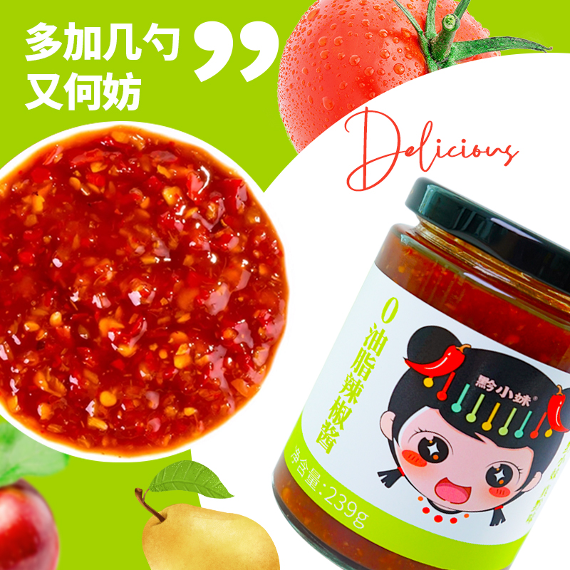 黔小妹0油脂辣椒酱鲜香无油下饭酱调味荞麦拌饭面辣酱蘸料朝天椒
