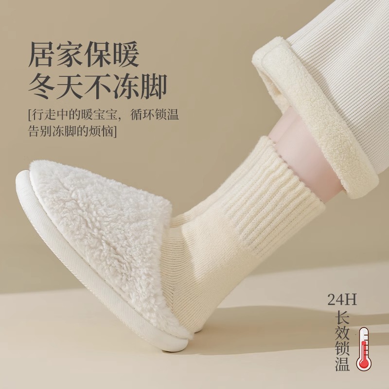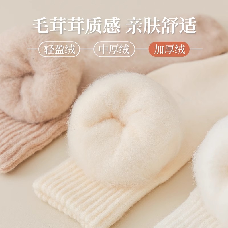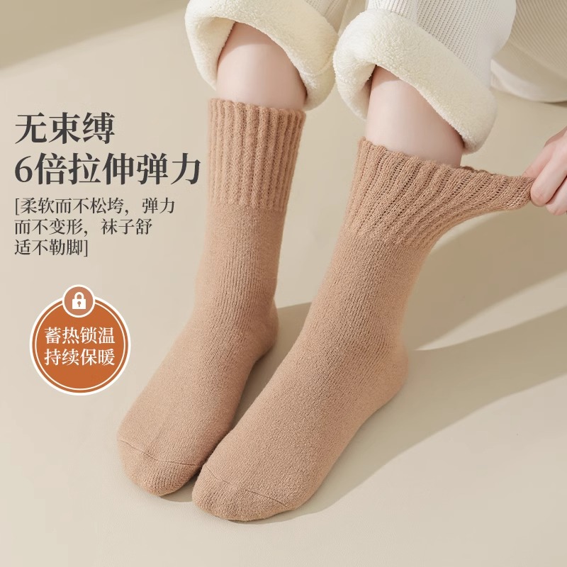 羊绒袜子女款秋冬季加绒加厚保暖中筒袜女士孕妇月子袜居家睡眠袜