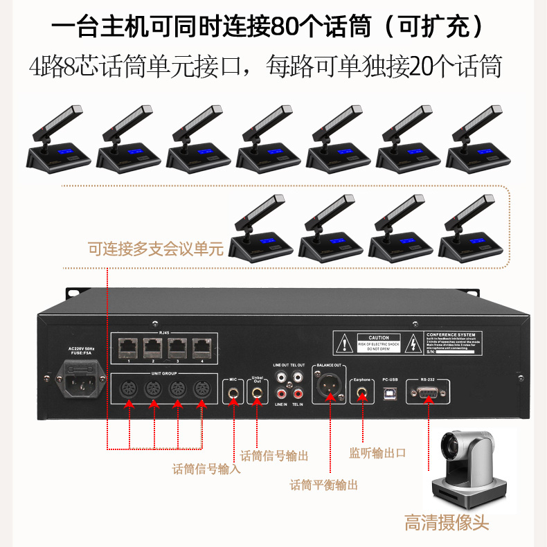有线会议话筒手拉手系统专业讨论型视像跟踪台式鹅颈双方管麦克风