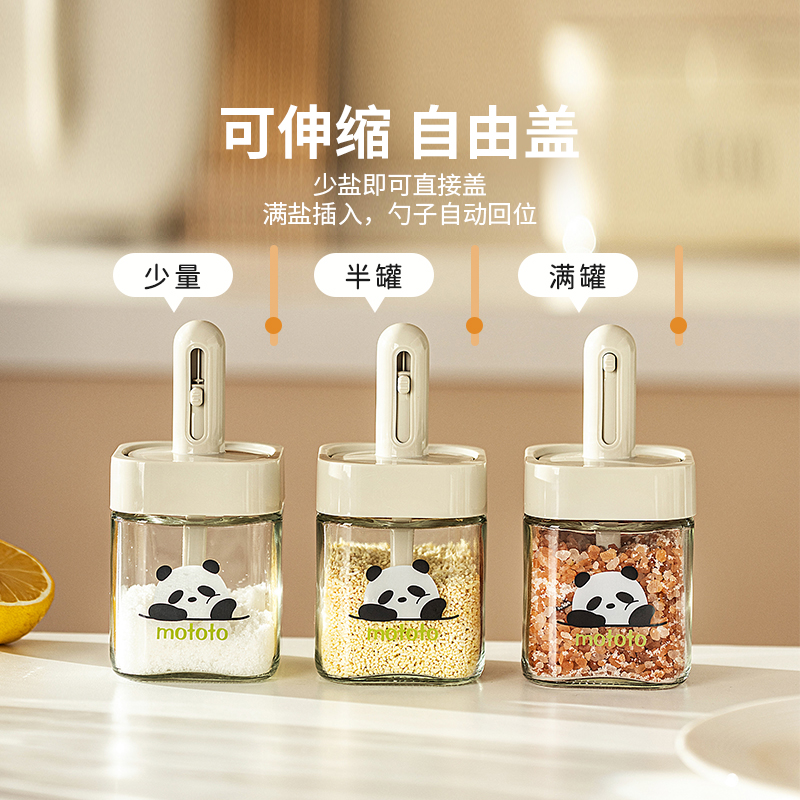 摩登主妇mototo熊猫伸缩调料罐厨房勺盖一体盐罐调味瓶罐套装组合