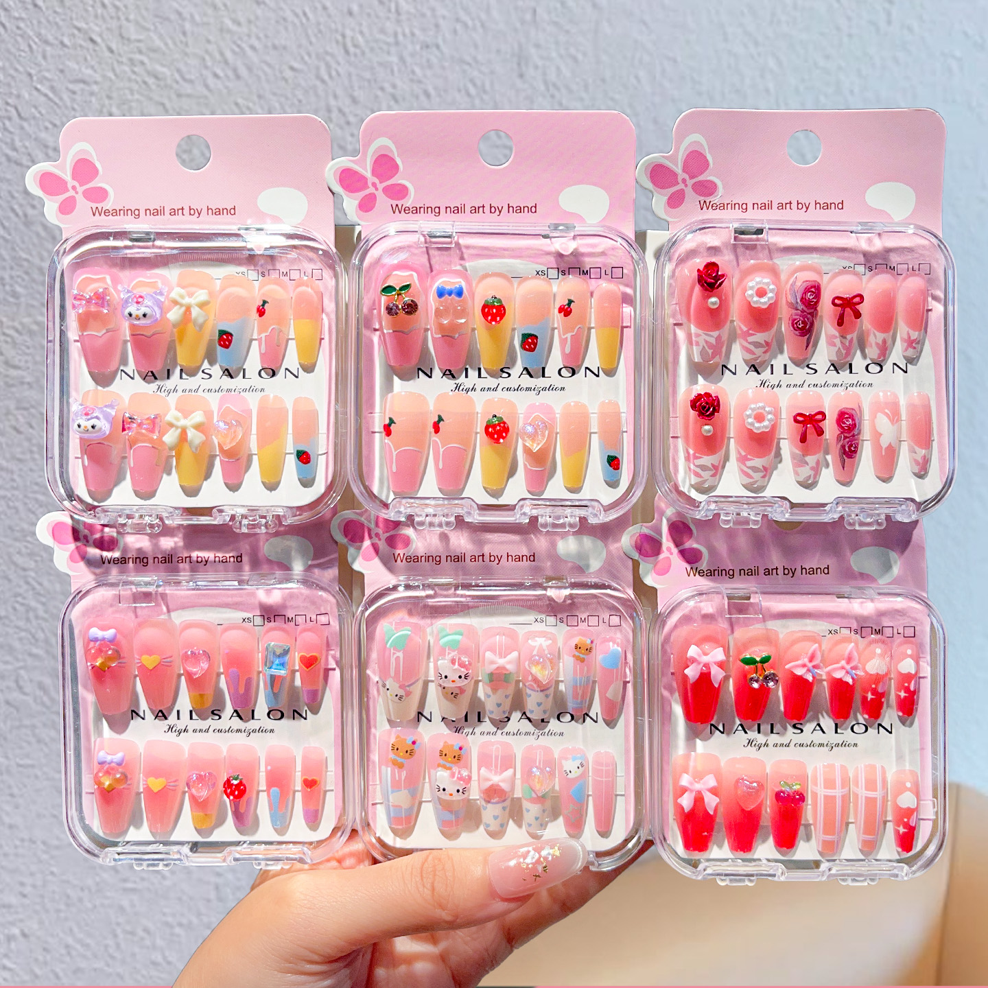 卡通儿童穿戴甲甜美可爱女童指甲贴自粘防水2025新款小女孩礼物玩具立体贴纸小学生长款显白美甲贴片软甲片