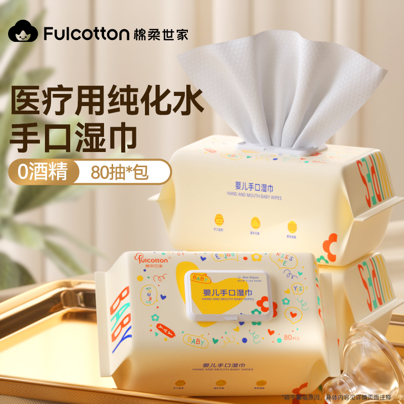 棉柔世家婴儿湿巾清洁湿巾婴儿手口湿巾80抽每包一次性抽取式