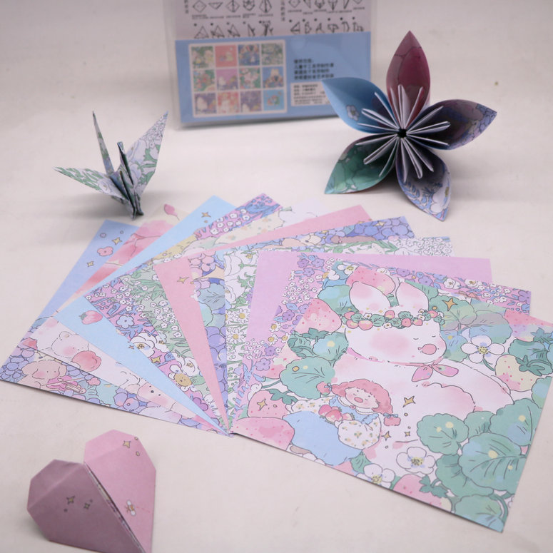正方形彩色折纸小满的夏天幼儿园学生千纸鹤印花手工纸