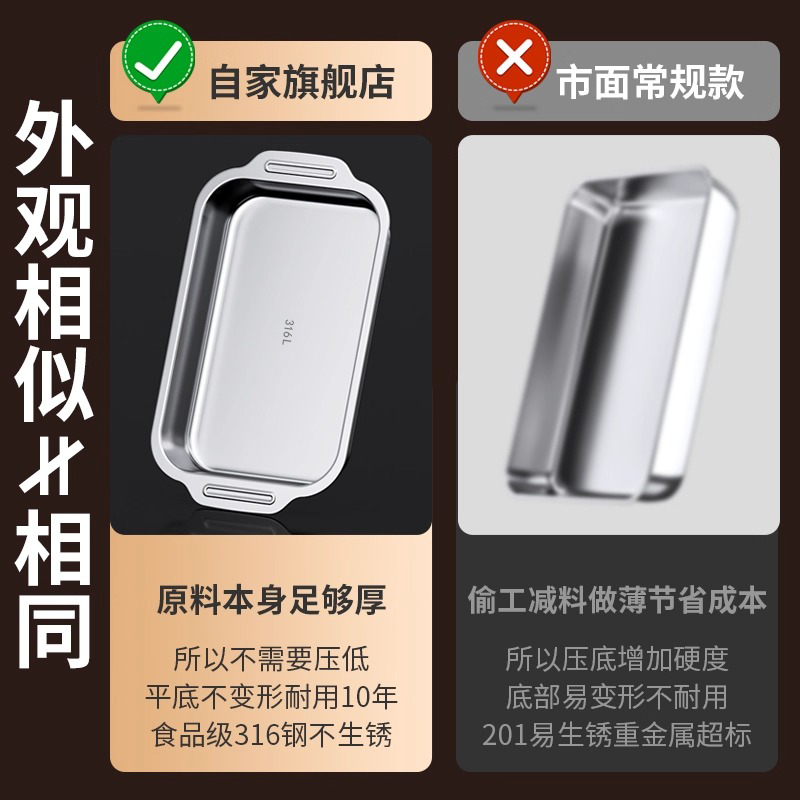 316L不锈钢长方形烤鱼盘家用加厚食品级烤鱼专用烤盘托盘电磁炉
