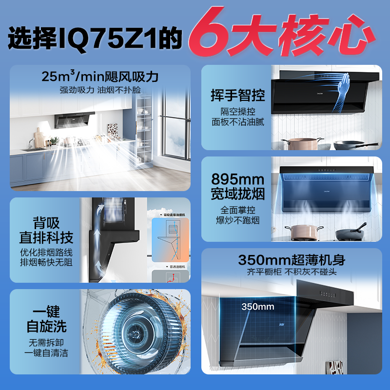 [重磅新品]海尔统帅吸油烟机家用厨房大吸力顶侧双吸92D升级 75Z1