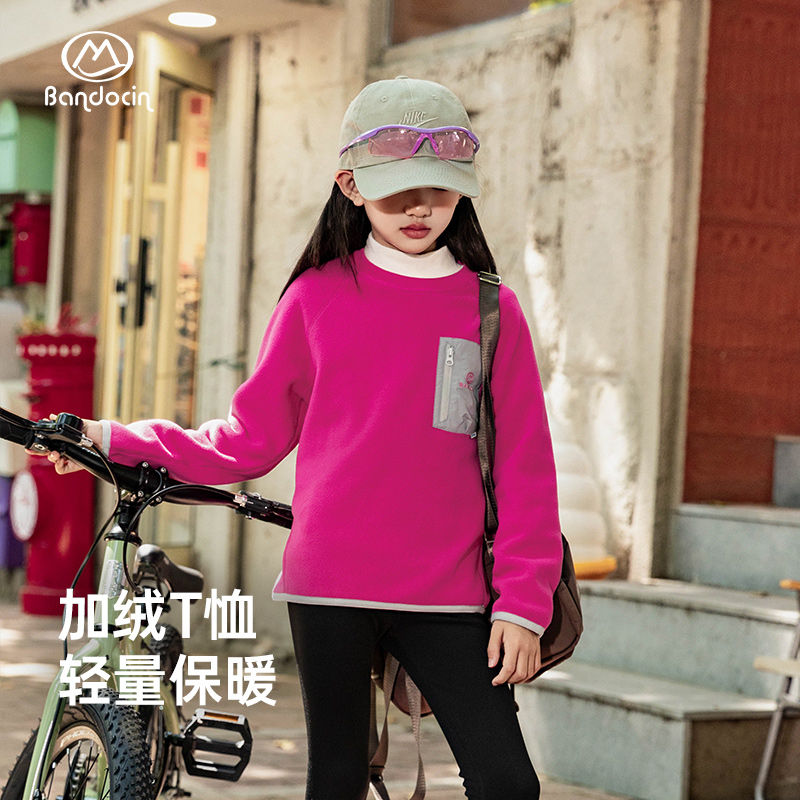 半度闲女童摇粒加绒卫衣洋气秋冬装中大童25新款儿童冬季加厚上衣